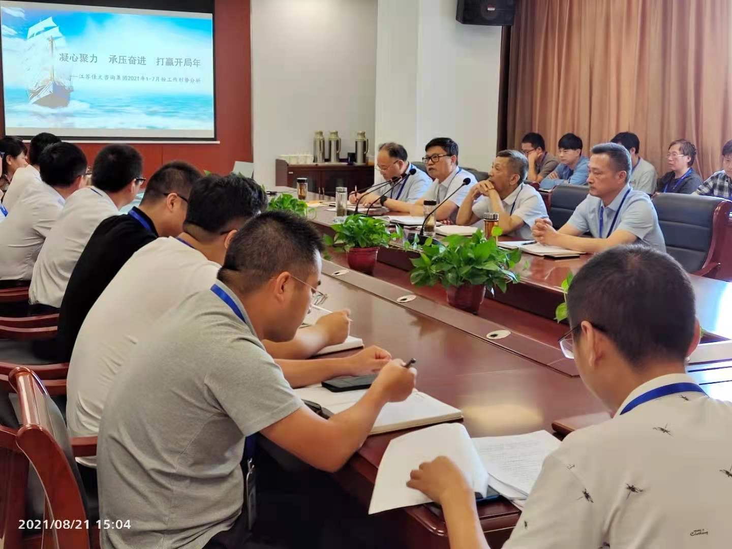 江蘇佳文咨詢集團于8月21日下午,召開集團2021年1-7月份工作形勢分析會,全體員工參加會議。本次會議主題為“凝心聚力、承壓奮進、打贏開局年”,會議由總經(jīng)理包平主持,公司主要領(lǐng)導(dǎo)在會上作重要講話。