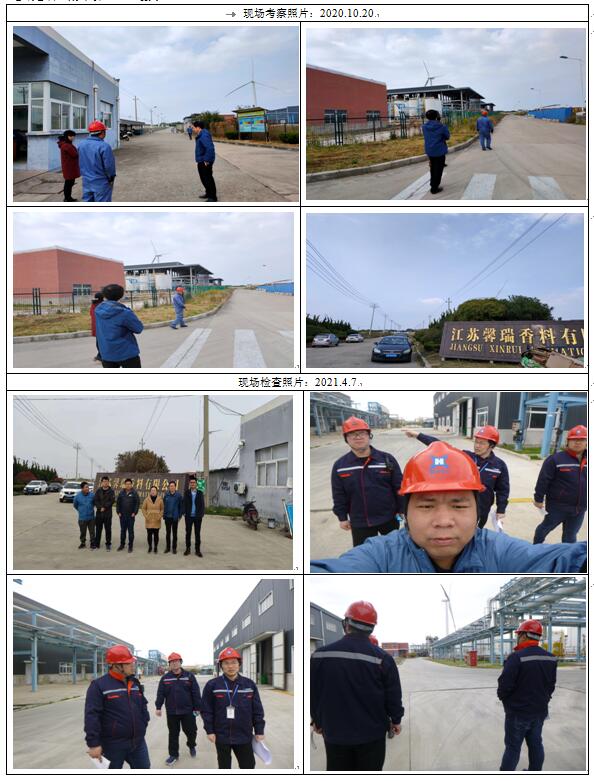 安全評(píng)價(jià)項(xiàng)目簡(jiǎn)介 | 江蘇馨瑞香料有限公司成立于2014年06月19日,企業(yè)位于江蘇濱海開發(fā)區(qū)沿海工業(yè)園(北區(qū)),法定代表人:應(yīng)思斌。注冊(cè)資本2000萬美元,由江蘇新化化工有限公司出資16%、浙江新化化工股份有限公司出資35%,Givaudan SA(瑞士奇華頓公司)出資49%共同組建。公司現(xiàn)有職工189人,設(shè)立安環(huán)部做為專職安全管理部門,其中專職安全管理人員4人。根據(jù)馨瑞香料提供的安全風(fēng)險(xiǎn)等級(jí)評(píng)估報(bào)告其安全風(fēng)險(xiǎn)等級(jí)為黃色。馨瑞香料已申報(bào)二級(jí)標(biāo)準(zhǔn)化,并已于2019年6月28日取得市級(jí)主管部門同意上報(bào)意見,內(nèi)部管理按標(biāo)準(zhǔn)化要求執(zhí)行。 有一期生產(chǎn)項(xiàng)目為:100t/a香芹酮(項(xiàng)目放棄)、100t/a苯氧乙酸烯丙酯、1000t/a乙酸對(duì)叔丁基環(huán)己酯、1000t/a乙酸鄰叔丁基環(huán)己酯、800t/a乙酸三環(huán)癸烯酯、500t/a丙酸三環(huán)癸烯酯、200t/a乙酸蘇合香酯、100t/a菠蘿酯、200t/a庚酸烯丙酯已通過安全設(shè)施竣工驗(yàn)收,已于2017年11月20日領(lǐng)取了《安全生產(chǎn)許可證》,許可證號(hào):(蘇)WH安許證字[J00480],許可范圍:15.179t/a環(huán)己酮、17.36t/a甲醇、70.884t/a乙酸[含量>80%],有效期至2020年11月19日(因一期項(xiàng)目涉及的物料儲(chǔ)存轉(zhuǎn)移到二期新建倉庫、儲(chǔ)罐,因二期新建設(shè)施尚竣工驗(yàn)收進(jìn)度影響,安全生產(chǎn)許可證過期,所以一期生產(chǎn)項(xiàng)目目前處于停產(chǎn)狀態(tài))。因二期12000噸香料生產(chǎn)線技改項(xiàng)目的建設(shè),其中部分產(chǎn)品與一期項(xiàng)目為相同產(chǎn)品,使用相同設(shè)備,故對(duì)一期項(xiàng)目涉及使用的設(shè)備、工藝(含催化劑,已取得省化工行業(yè)協(xié)會(huì)認(rèn)證,相關(guān)高危工藝已進(jìn)行反應(yīng)熱風(fēng)險(xiǎn)評(píng)估)進(jìn)行了 變更,保持一期、二期相同產(chǎn)品的設(shè)備、工藝一致。另二期新建了原料倉庫一、原料倉庫二、原料倉庫三、原料倉庫四,改擴(kuò)建了罐區(qū)(罐組1~8)對(duì)一期項(xiàng)目所涉及的原輔材料、產(chǎn)品的儲(chǔ)存進(jìn)行了 變更,本次變更不涉及產(chǎn)品產(chǎn)能的變化。一期項(xiàng)目與二期相同產(chǎn)品因工藝變更與二期一致及重新校核,現(xiàn)領(lǐng)證品種為中間產(chǎn)品:240.36t/a乙酸(2630)[含量>80%]、266.7t/a丙酸(126)、17.51t/a戊醇(2165)、11.9t/a丁酮(236)、673.36t/a丁酮甲醇混合液、249.25t/a仲丁醇(219)、36.83t/a烯丙醇(141劇毒);副產(chǎn)品:379.81t/a丁酮(236)、1125.26t/a乙酸[含量>80%](2630)、114.3t/a甲醇(1022)、66.87t/a鹽酸(2507)。 | ||||